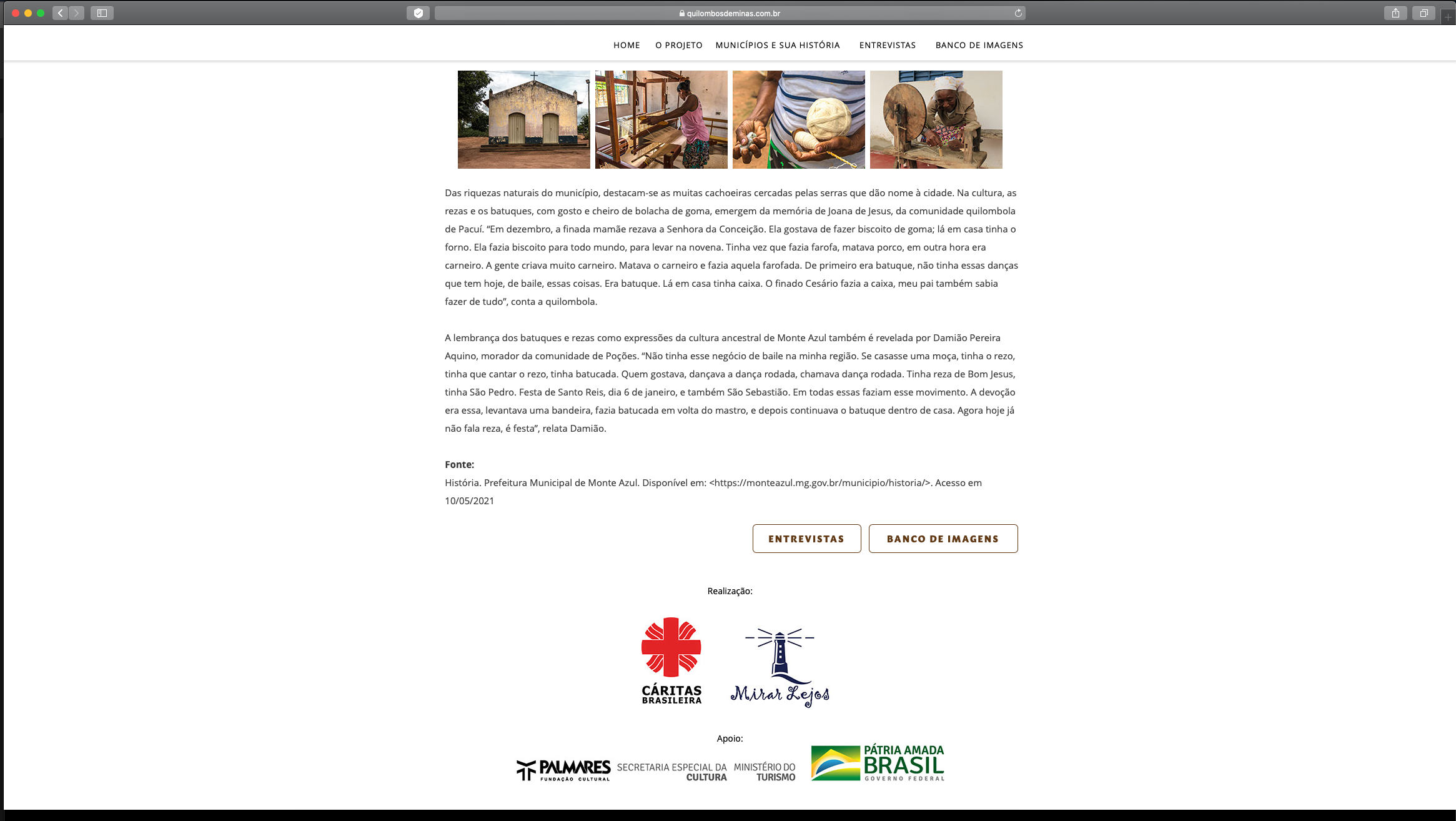 Launched in 2021, “Quilombos de Minas” website showcases several interviews from community members of Minas Gerais state.